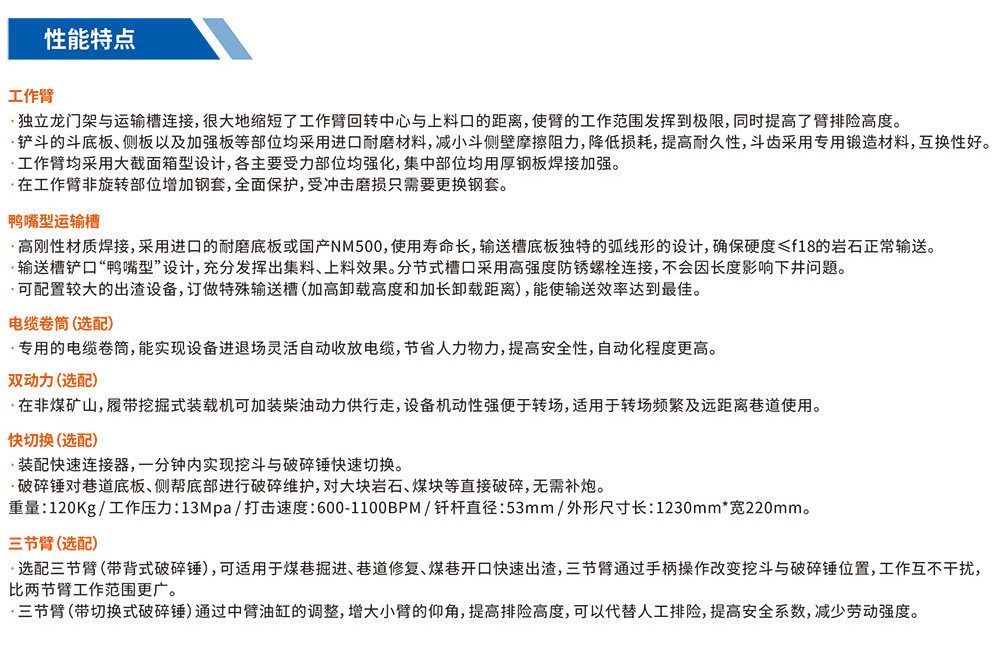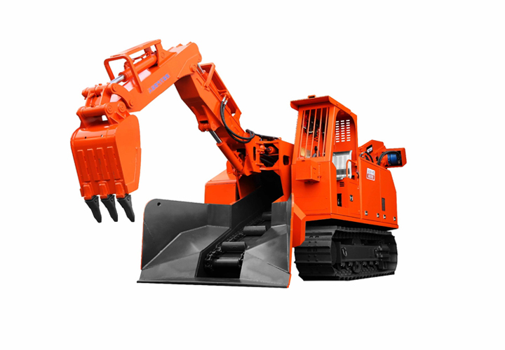 履帶挖掘式裝載機(扒渣機)是一種連續生產(chǎn)出渣設備,用于鐵路、公路隧道及煤礦引水洞、國防洞窟掘進(jìn)施工中裝載作業(yè)。本機靠履帶推進(jìn)扒取巖石,通過(guò)反鏟機構扒臂扒取遠處的巖石進(jìn)自身的刮板輸送機,輸送機從尾部將巖石卸入自卸汽車(chē)、梭式礦車(chē)、側卸式礦車(chē)、皮帶機等其它轉載設備。